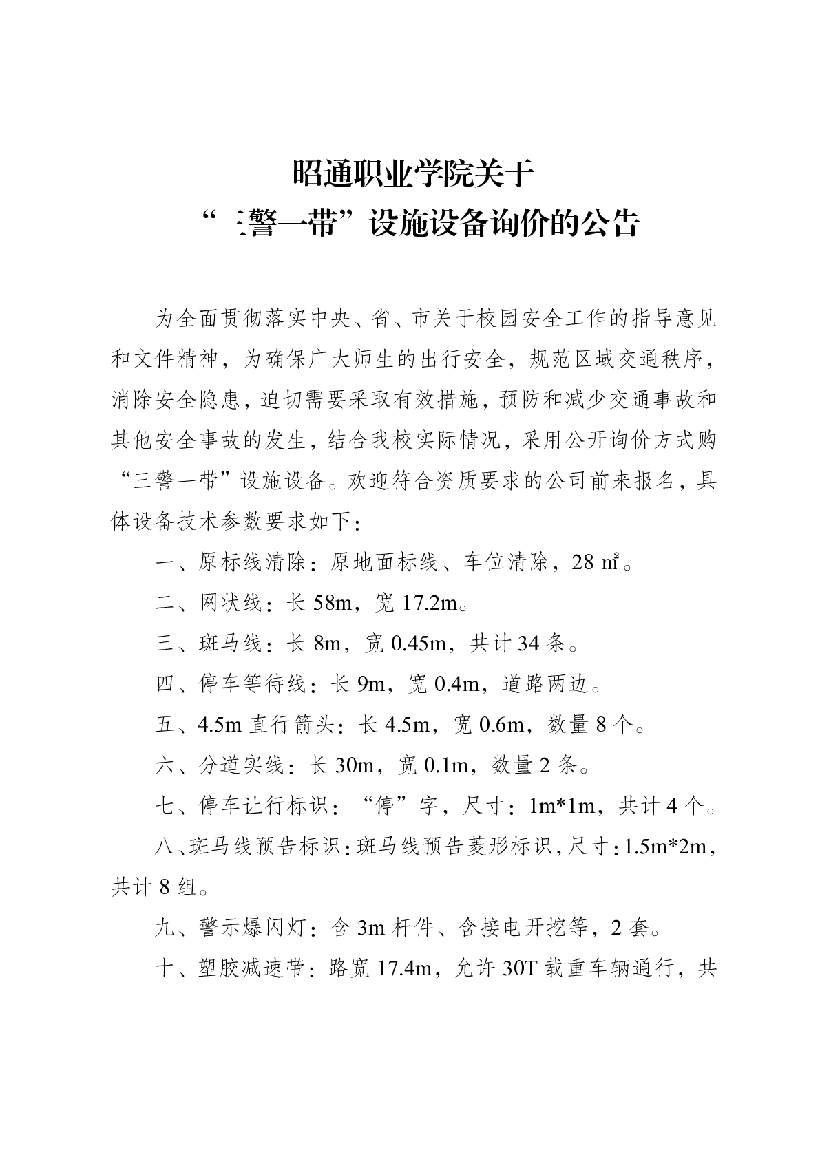 昭通职业学院 关于“三警一带”设施设备询价的公告